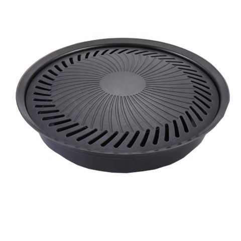 Placa de parrilla de carbón portátil, parrilla de barbacoa antiadherente, redonda, de aluminio fundido, para desayuno